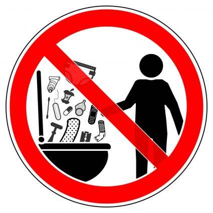 Damenbinden, Feuchttücher, Tampons, Kondome, alle nichtwasserlöslichen Feststoffe. Das gilt auch für Küchentücher.