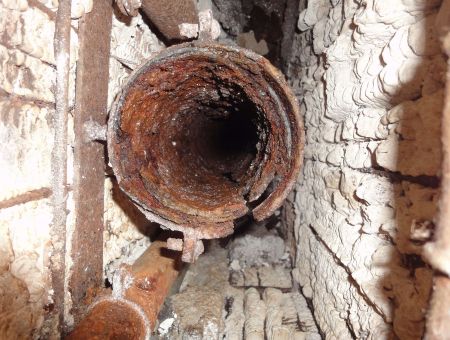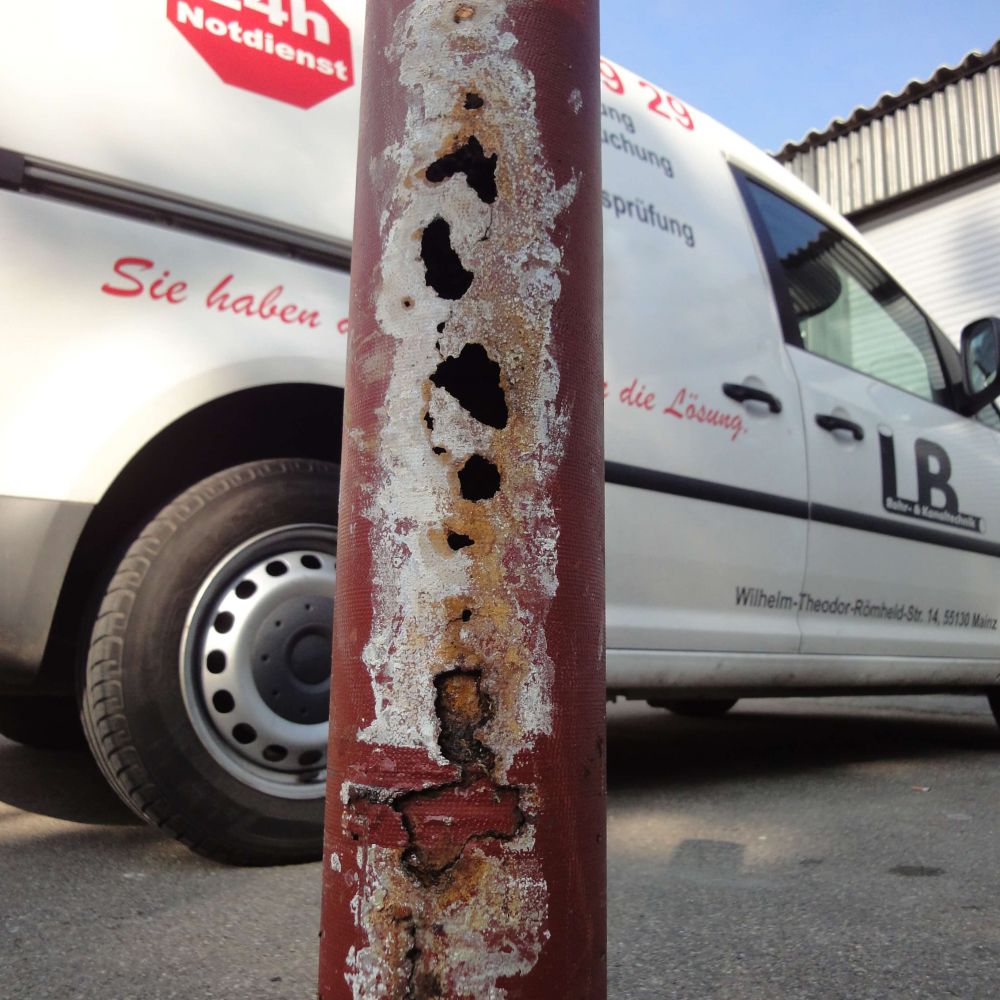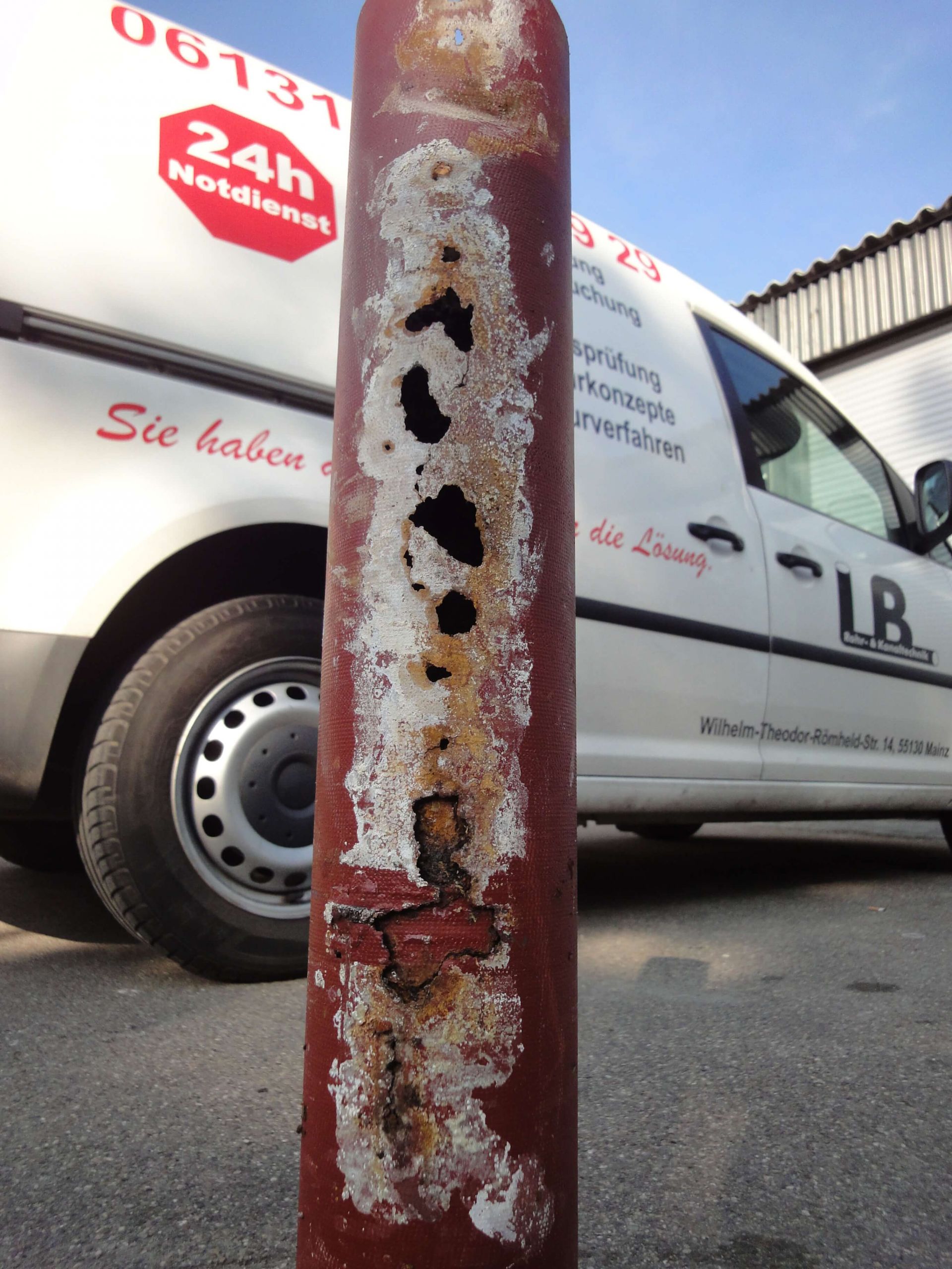 Erfahrungsgemäß bestehen fast 80% aller Fallleitungen aus Gussrohren. Diese neigen nach Jahren und Jahrzehnten der Nutzung zu Innen- und Außenkorrosion. Hierbei löst sich das Wandungsmaterial schichtweise auf und wird von Brauchwasser abgetragen.